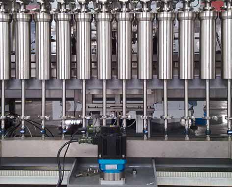 1、采用PLC編程控制,伺服電機(jī)驅(qū)動(dòng)穩(wěn)定的雙絲杠傳動(dòng)機(jī)構(gòu),確保了活塞運(yùn)動(dòng)行程高精度,實(shí)現(xiàn)了精確灌裝。采用滾珠絲杠和導(dǎo)柱兩側(cè)安裝、滾珠絲杠與升降橫梁分體聯(lián)接的方式,滾珠絲杠更換非常方便,單人即可拆裝且無需拆卸升降橫梁。目前別的廠家都是采用在升降橫梁中間安裝絲桿的結(jié)構(gòu),絲桿更換時(shí)非常困難,要在幾個(gè)人的配合下整體拆卸才能完成。