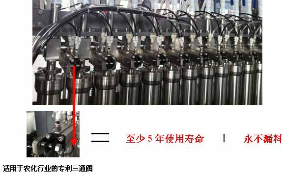 3、根據(jù)高粘度灌裝機(jī)5年的研發(fā)經(jīng)驗(yàn)及市場反饋,我公司自行成功研發(fā)出更適合農(nóng)化行業(yè)的灌裝三通閥。該三通閥結(jié)構(gòu)簡單、性能可靠,很大的優(yōu)點(diǎn)在于使用壽命長,密封可靠,長時(shí)間使用后不漏料。